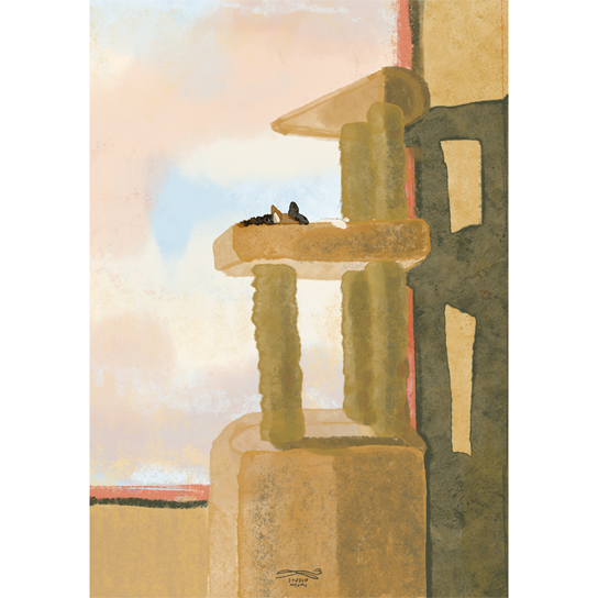 노을지는 창가, 캣타워에서 단 잠을 자는